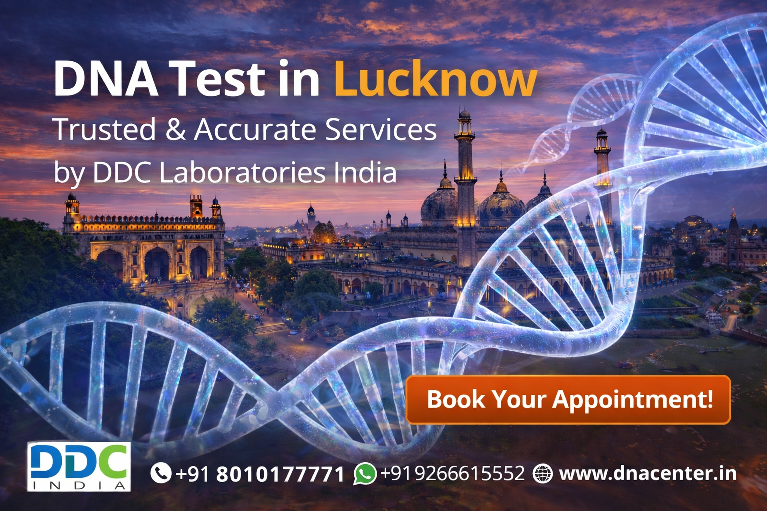Lucknow is the cultural center of Uttar Pradesh. It is famous for its Nawabi heritage, food, and architecture. A DNA test in Lucknow provides accurate, confidential paternity and forensic testing.